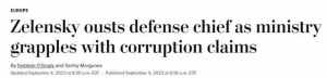 《华盛顿邮报》的文章称,几个月来,人们一直猜测列兹尼科夫将被赶下台,如今列兹尼科夫被免职了。尽管列兹尼科夫没有在正在进行的腐败调查中受到针对他个人的指控,泽连斯基也没有在其声明中提及